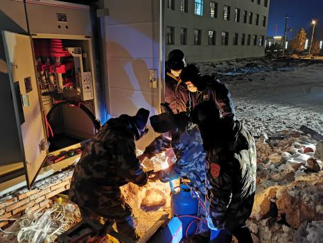 12月的東烏旗,室外氣溫已經(jīng)逼近零下二十四五度,在外面待一會(huì)兒就冷的不行,更別說長時(shí)間進(jìn)行露天作業(yè)了。由于前幾日的降雪,氣溫驟降,土壤深度凍結(jié),施工現(xiàn)場已不具備機(jī)具施工條件,電建東烏分公司施工人員針對施工中遇到的困難,一致決定采取“笨辦法”,挖不動(dòng)的地方先用火烤,機(jī)器進(jìn)不去的地方就用人扛著電纜往里送,想方設(shè)法確保工程按期完成。