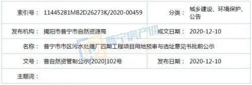 近日,依照《廣東省城鄉(xiāng)規(guī)劃條例》第二十九條規(guī)定,普寧市自然資源局發(fā)布了普寧市市區(qū)污水處理廠四期工程項目用地預(yù)審與選址意見書批前公示,具體內(nèi)容如下: